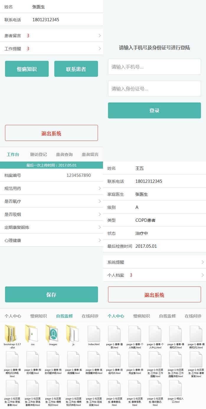 手机微信在线门诊,在线就诊公众号html模板。主要有:登录、个人档案、个人中心、慢病知识、我的问题、系统提醒、在线问诊、自我监督、工作台等一共25个页面。代码简洁。...