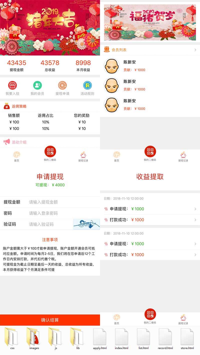 手机站商家分销活动页面,商家入驻,会员列表,提现记录页面模板。...