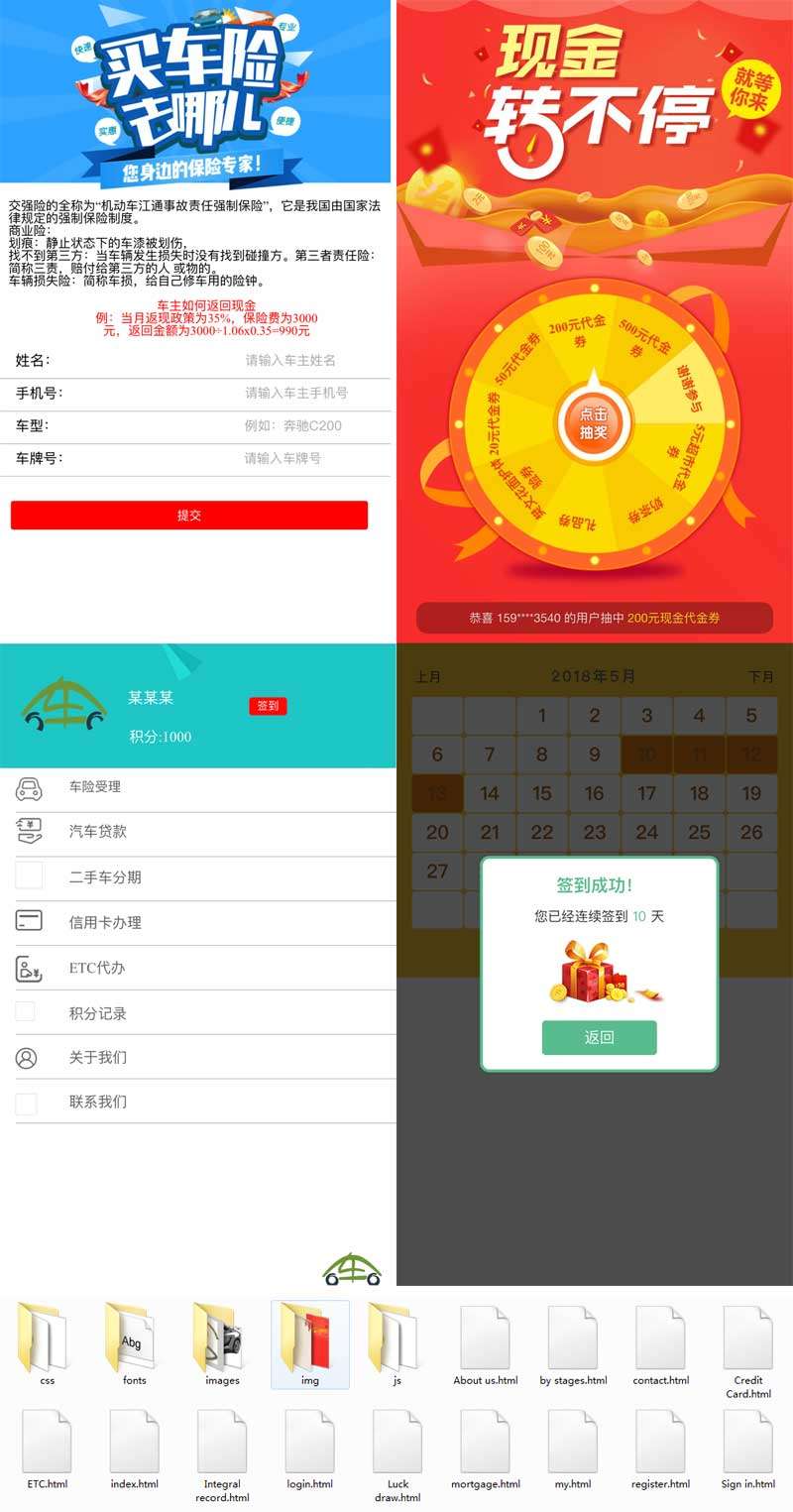 手机版买车险页面模板,汽车车险平台手机模板html下载。主要有:表单填写页面、抽奖活动页面、个人中心、登录、注册、签到、联系我们等13个手机页面。...