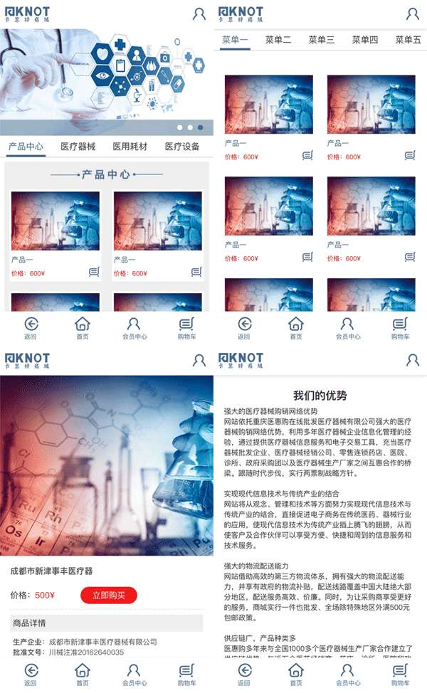 简单经典手机商城模板,适用于微商城的医疗器械商城模板。主要页面有:首页、产品列表页、详情页面、关于我们等4个手机商城页面下载。...