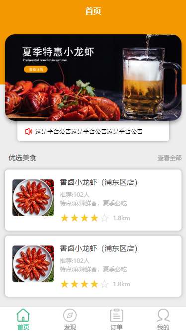 基于uni-app、HBuilderX制作的移动端美食促销首页单页静态模板,在HBuilderX里可以发布成微信小程序静态模板、百度小程序静态模板、支付宝小程序静态模板、qq小程序静态模板、头条小程序静态模板、安卓APP静态模板及ios APP静态模板...