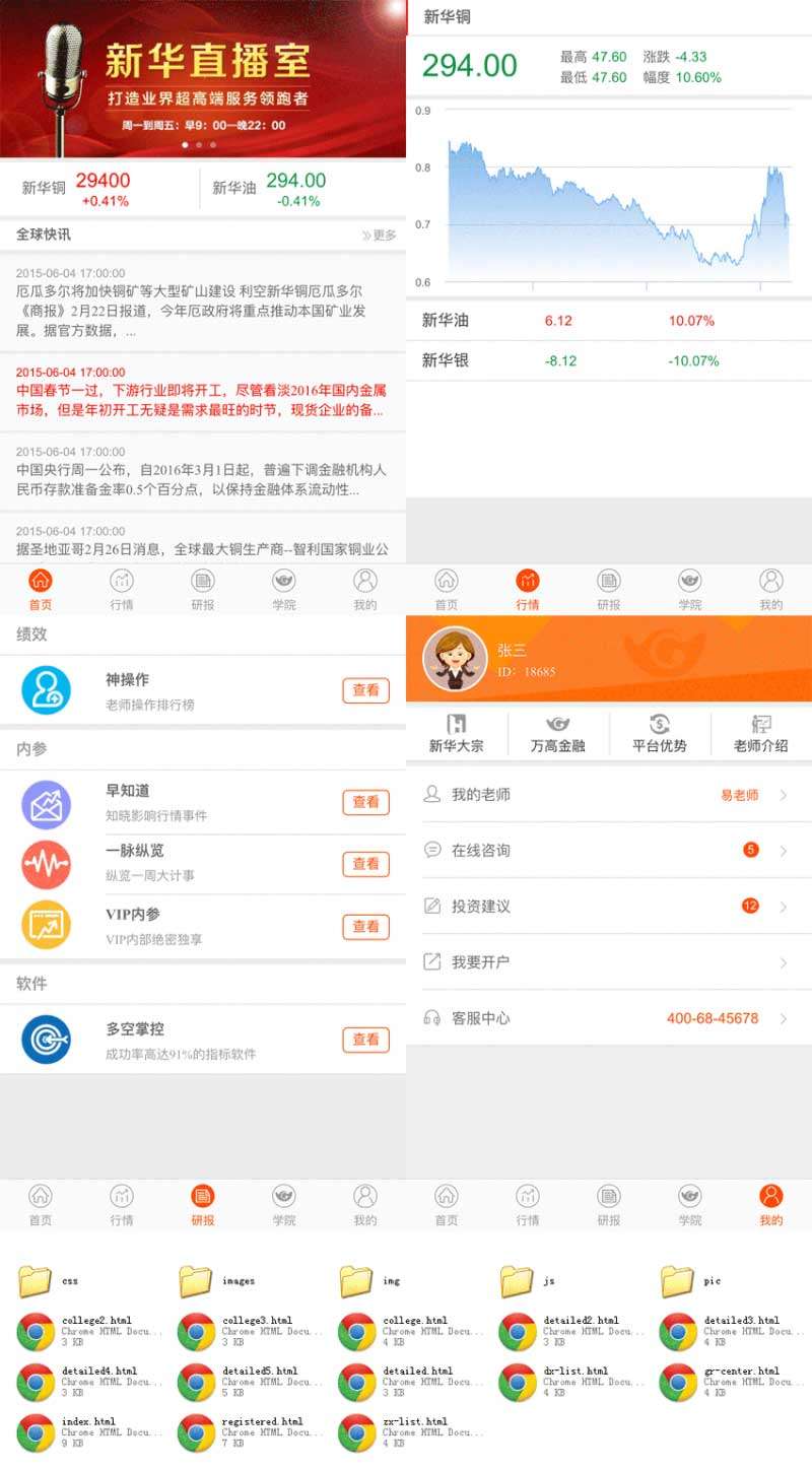 简单实用的期货交易金融公司手机网站模板html下载,主要页面有:行情、研报、学院、个人中心等总共13个手机页面。...
