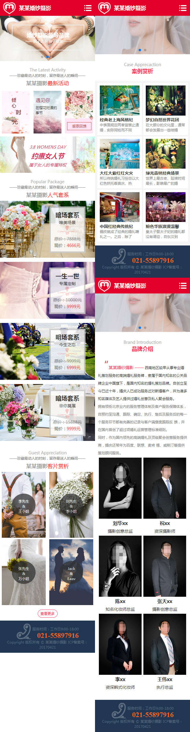 红色简约时尚婚庆摄影类手机模板HTML静态手机模板,主要页面有:网站首页、品牌故事、案例赏析、客片欣赏、新闻资讯、联系我们等总共10个页面模板html下载。...