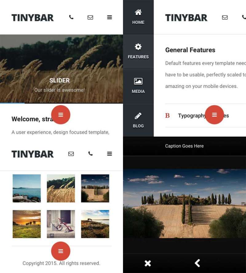 一款通用的企业博客手机页面模板,新闻资讯和图片博客,加上App风格任何移动模板需求特性和典型的页面,一个漂亮的手机和平板电脑3d侧边栏的效果。...