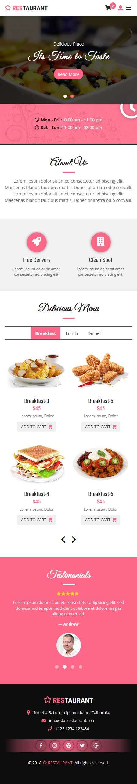 基于Bootstrap框架移动端餐饮外卖预订网站模板。适用于:餐厅、咖啡馆、面包店、饮料、披萨店和食品方面的网站设计。...