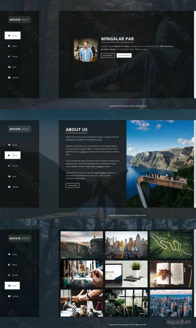 黑色宽屏的个人主页,个人博客,个人空间展示网页模板html下载。这是一套通用的个人作品展示介绍网站模板。...