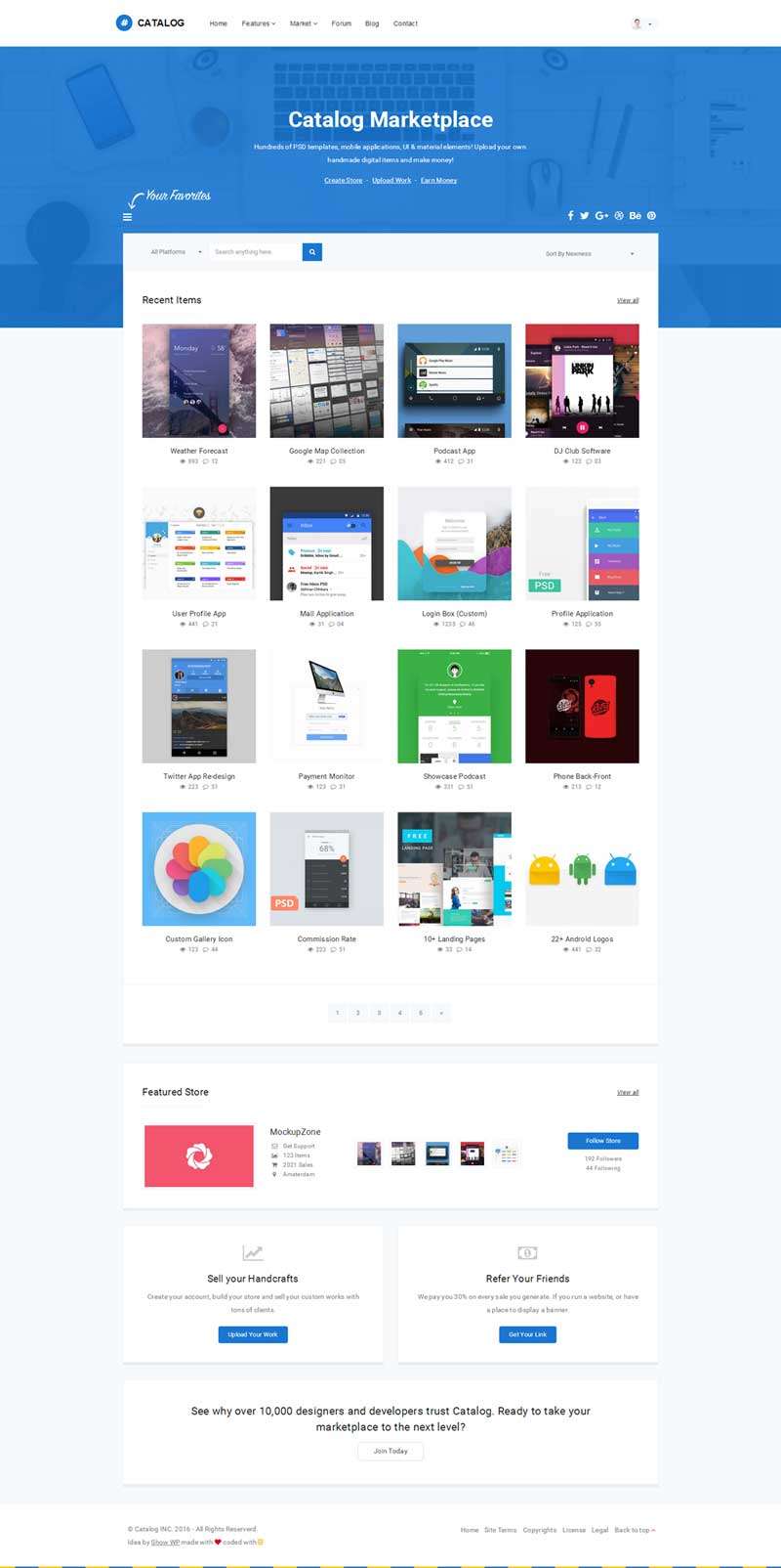 Catalog是一个购买/出售图片设计素材交易平台网站模板,基于Bootstrap,HTML5,CSS和jQuery。适用于购买销售网站,市场网站,多供应商网站、个人展示和类似的项目。 现代浏览器(IE9 +,Firefox,Safari,火狐,Chrome等)的支持,易于使用的html文件和自定义配色方案。...
