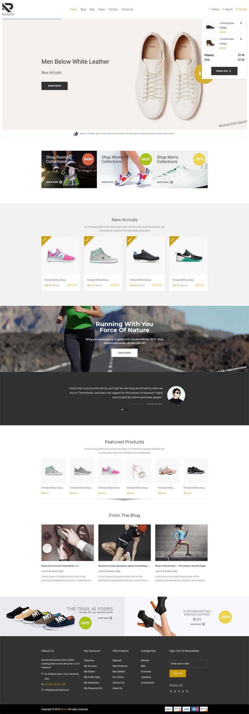 Raavin是精美的运动鞋电子商务网站Bootstrap模板。这个响应模板可以用来展示运动鞋,登山鞋,溜冰鞋,拖鞋,沙漠靴和孩子鞋等。Raavin有35个HTML页面包括3主页。您可以根据你的口味轻松地定制这个精美电商网站模板页面。...