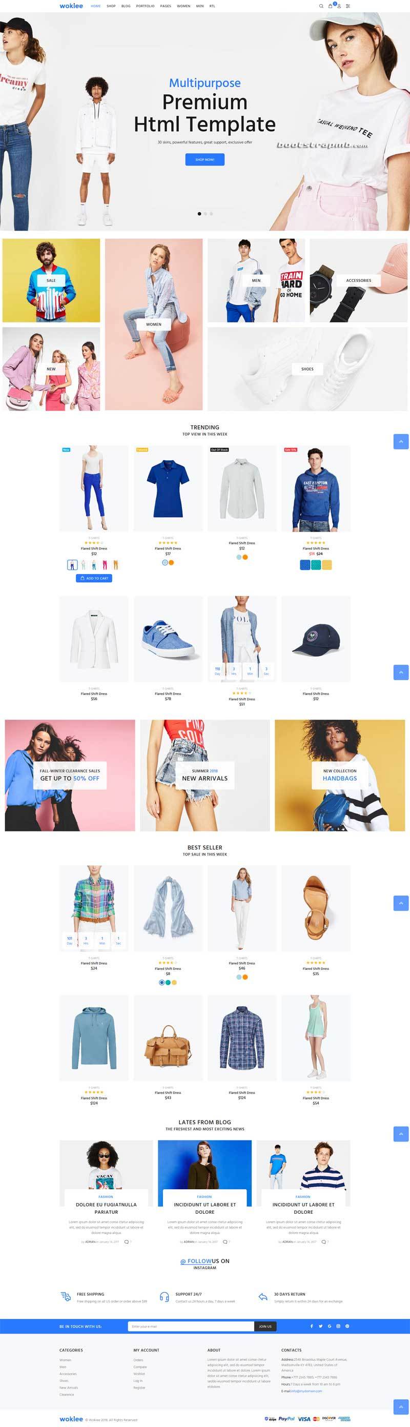 基于Bootstrap前端框架构造,蓝色宽屏的时尚服装电子商务HTML模板。包含26套不同的电商首页样式。完美的解决您的网上商城样式。各种各样大量的布局和风格可以创建不同的结构和满足任何特定的需求。...