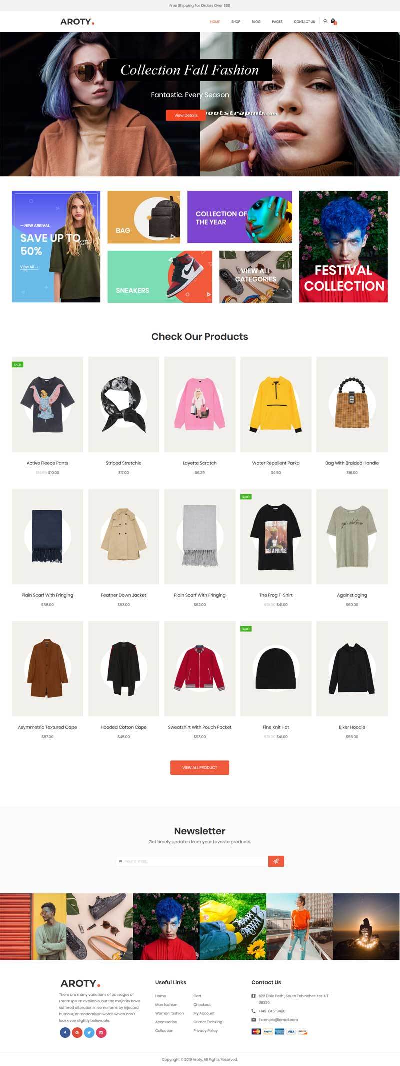 电子商务在线商城Bootstarp设计模板。适合销售服装,时尚,高级时装,男士时尚,女性时尚,配饰,数字,儿童,手表,珠宝,鞋,儿童,家具,体育,工具......等响应式布局,可自动调整到任何屏幕尺寸或分辨率。包含2个主页,以便为您提供最佳的选择。...