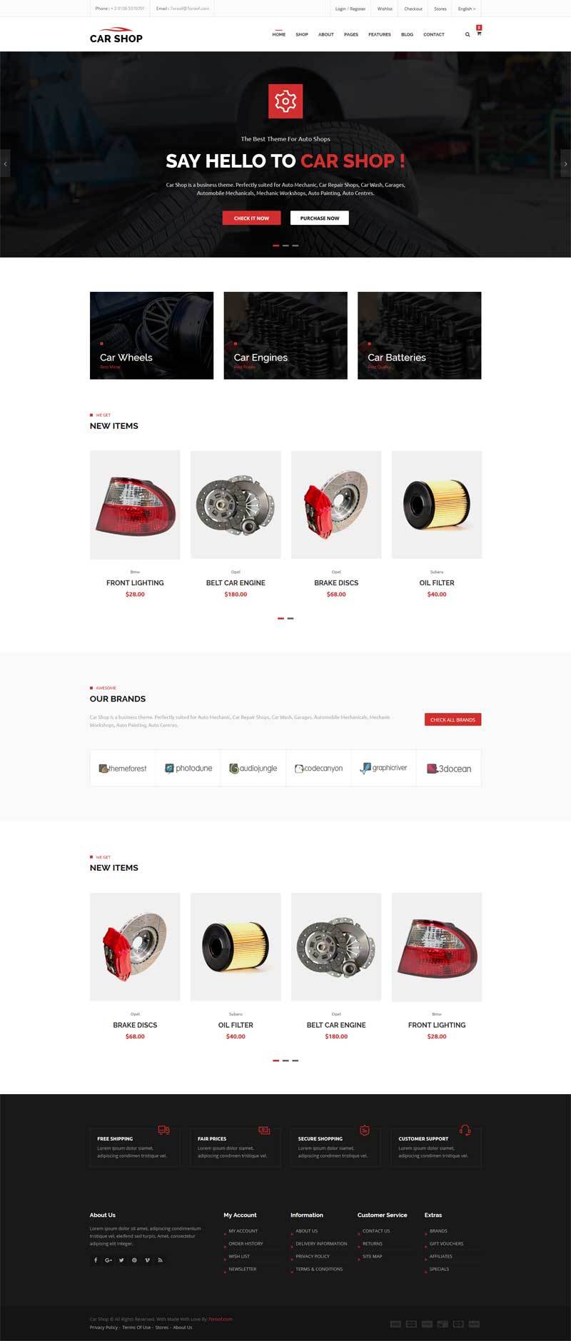 Car Shop电子商务汽车配件商城HTML模板。非常适合汽车修理、洗车、汽车机械、机械车间、汽车涂装、汽车中心服务在线汽车配件销售网站模板。根据你的需求很容易定制和编辑。 主要特色:54 + Html文件、40 +可重用的部分、广泛的风格、独特的和现代设计、灵活...