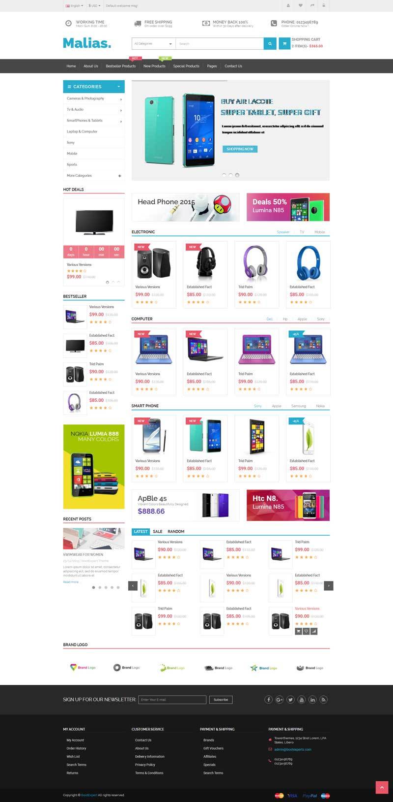Malias电子商务Bootstrap商城模板,适合销售手机、电脑、数码产品、电子产品、电器产品响应式布局宽度自动调整屏幕大...