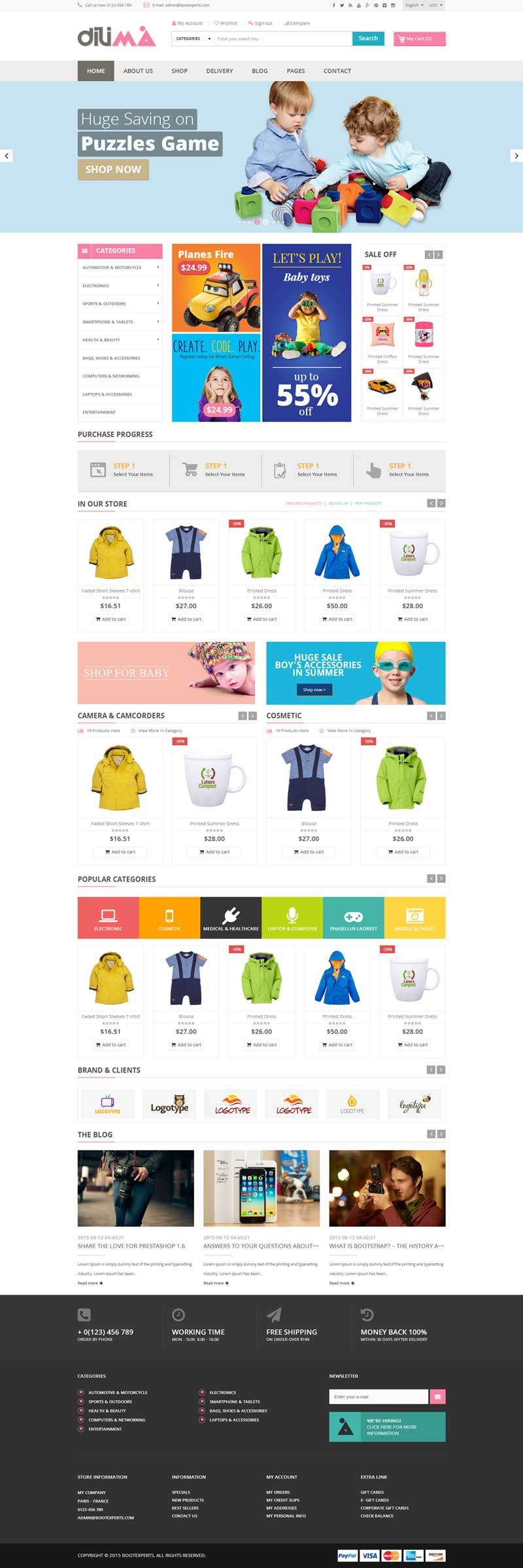 Dilima整洁的和优雅的设计,适合创建服装、服装、配饰、数码、手表、珠宝、鞋子,孩子,家具,体育等类型的网上商城它有一个充分响应宽度自动调整屏幕大...