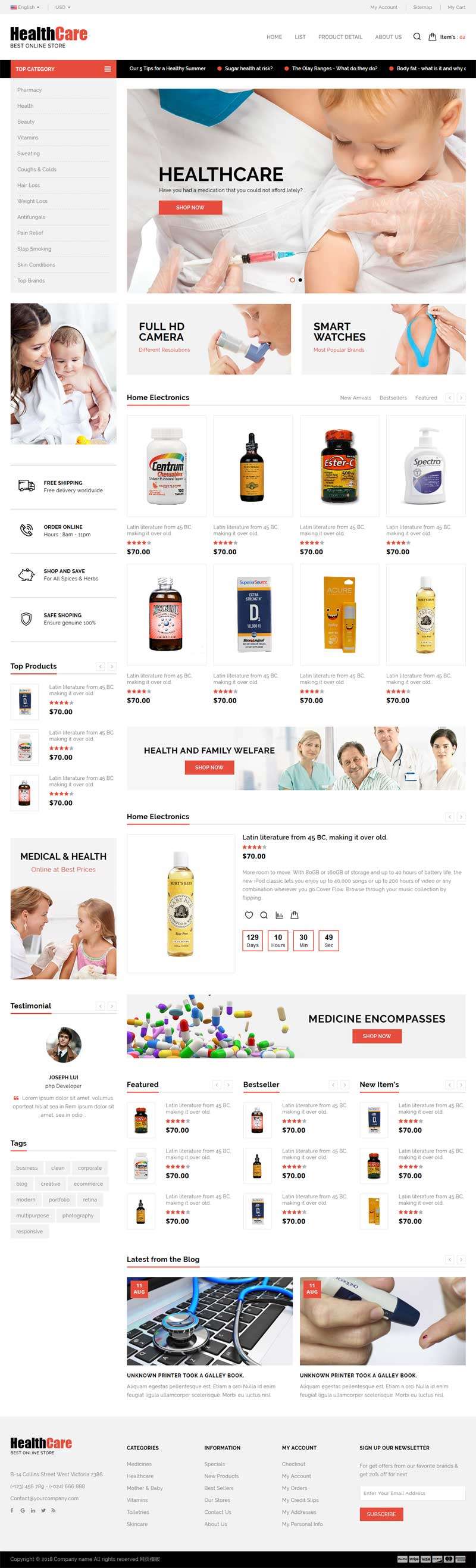响应式宽屏的网上医药商城网站,保健品电子销售商城模板html源码下载。...
