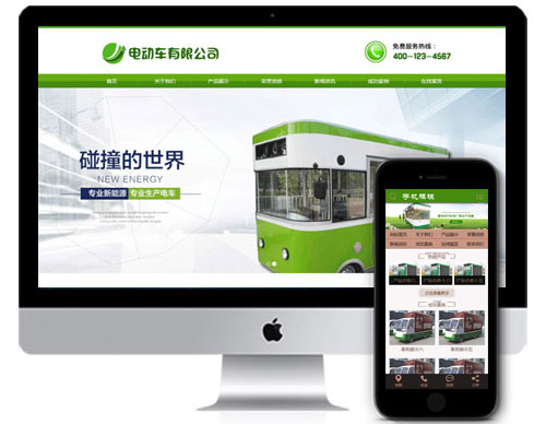 (带手机)绿色电动客车企业公司机械电子设计制造类织梦模