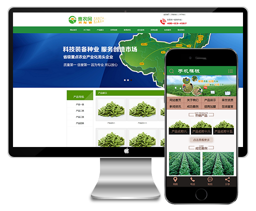 (带手机)绿色农业种植蔬菜水果织梦模板下载
