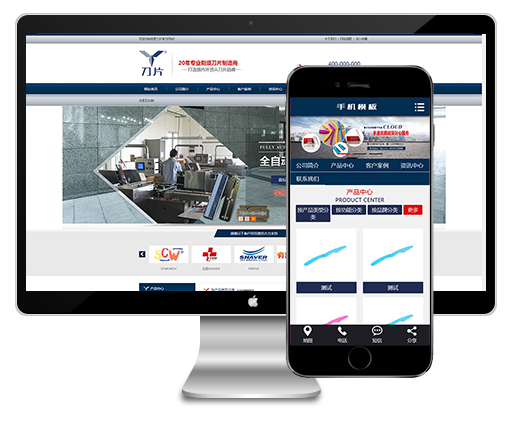 (带手机)营销型蓝色dedecms模板下载剃须刀刀片片企业网站织梦模板下载
