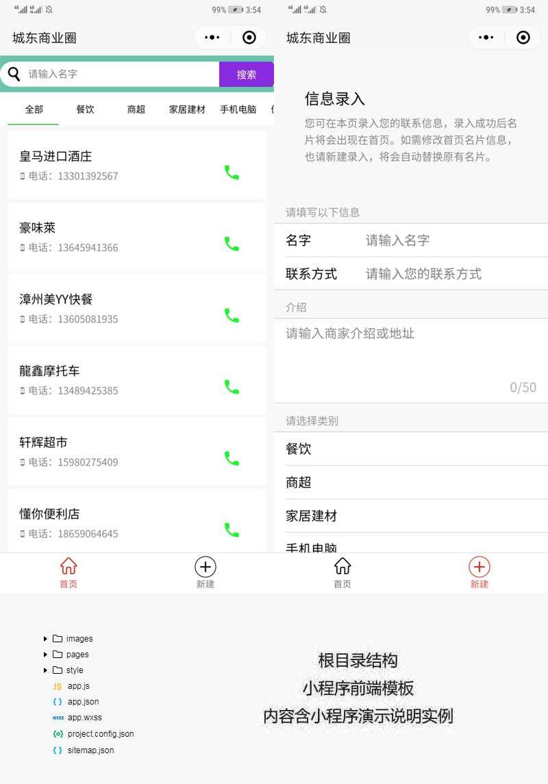 商业通讯录创建小程序模板