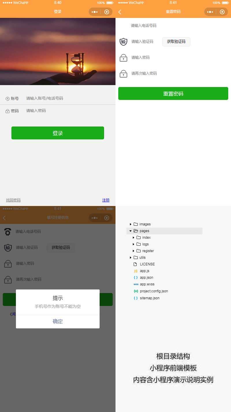 登录注册小程序网页模板