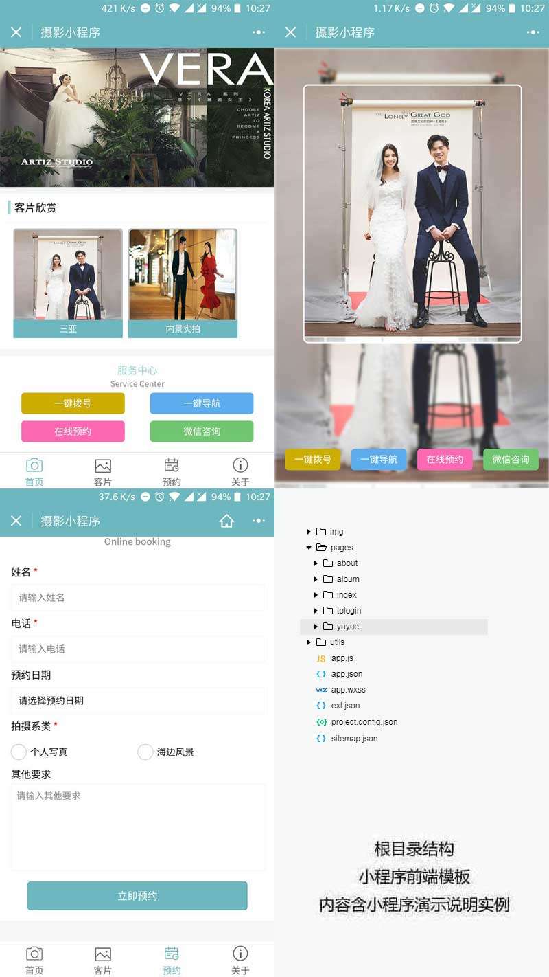 婚纱店预约小程序模板