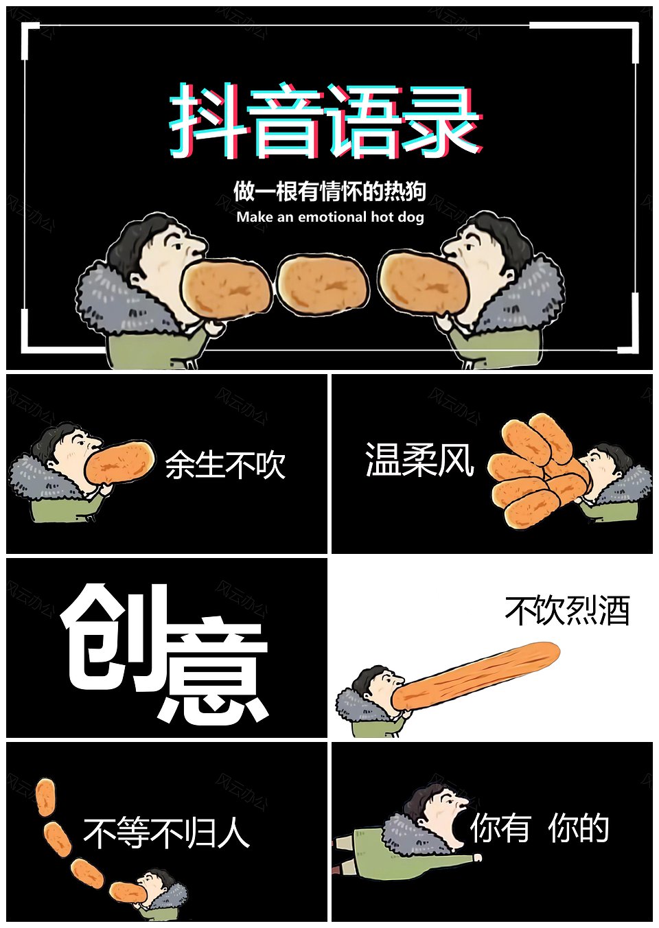 最强抖音语录吃热狗网红幽默搞笑快闪PPT模板