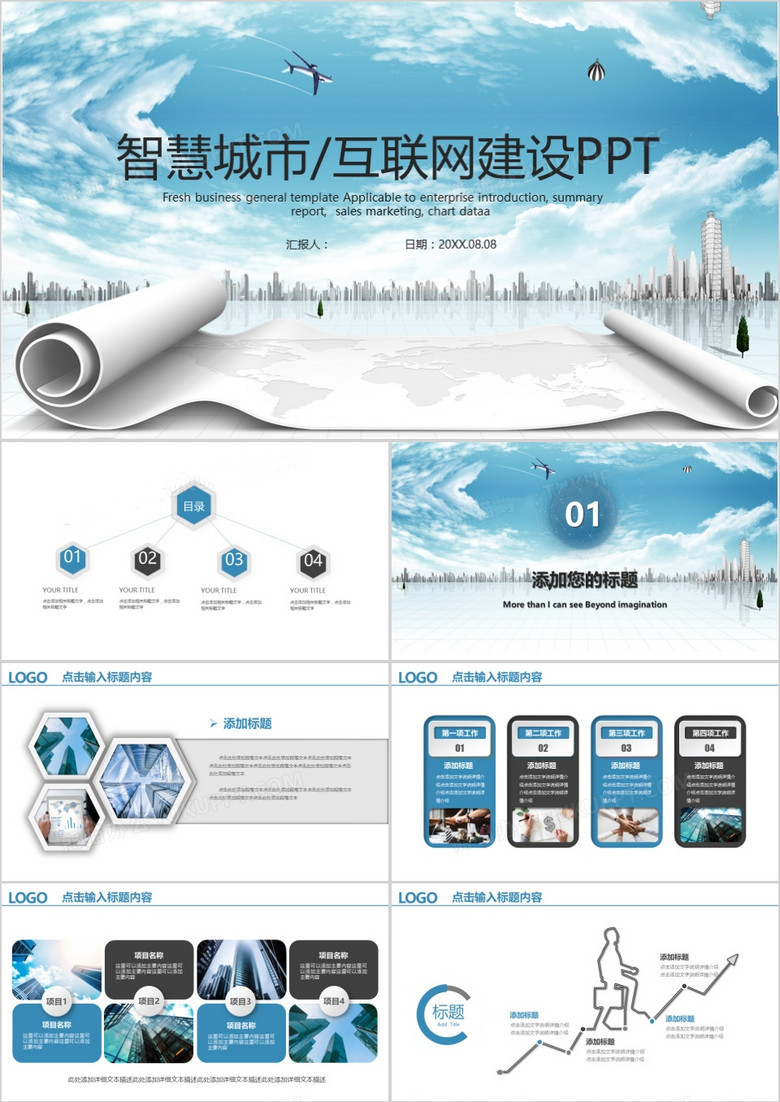 互联网智慧城市云计算大数据PPT模板