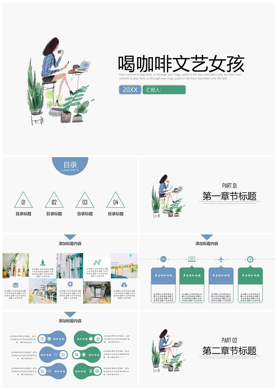 喝咖啡的文艺女孩咖啡主题文化PPT模板