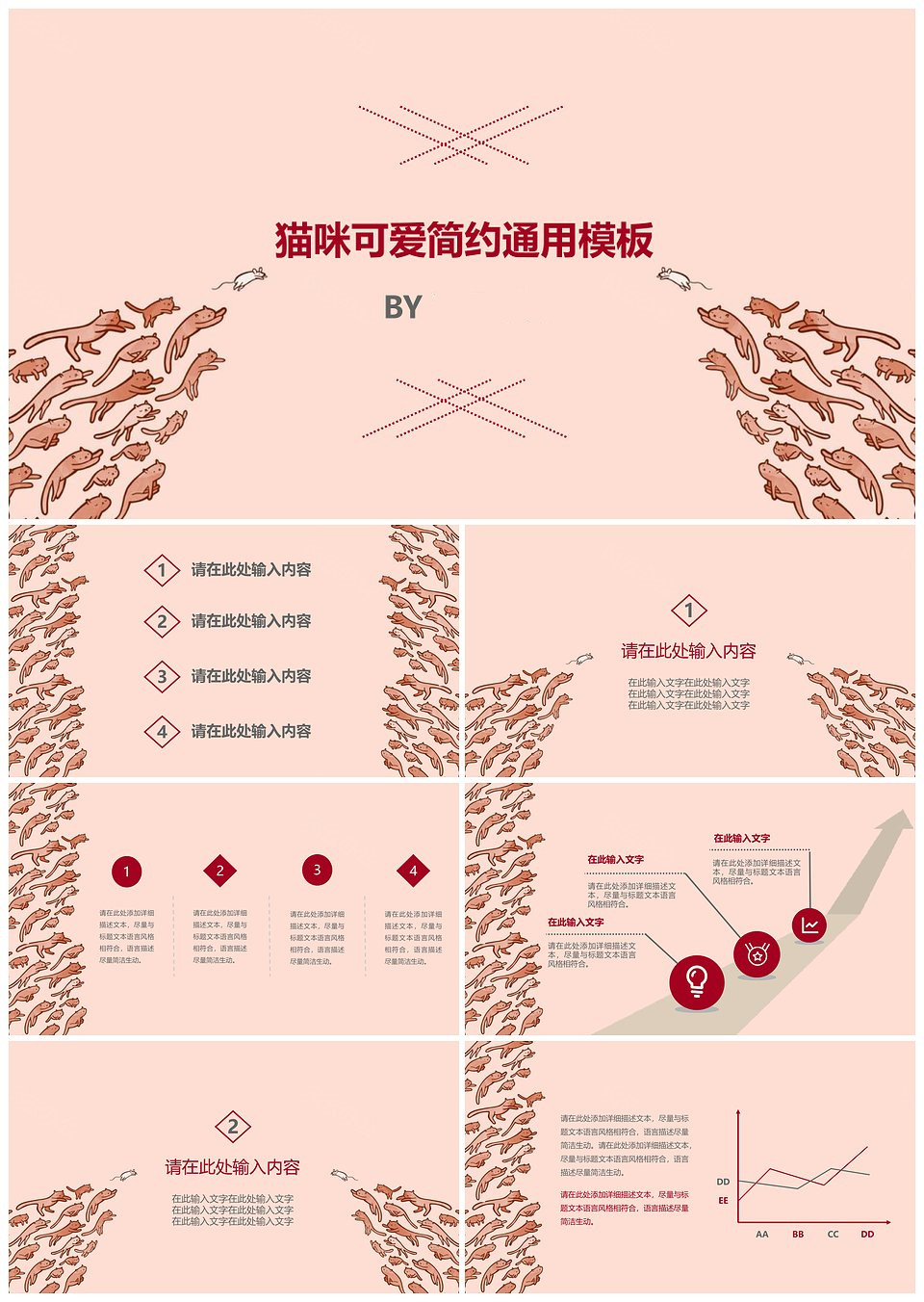 猫咪可爱简约通用PPT模板