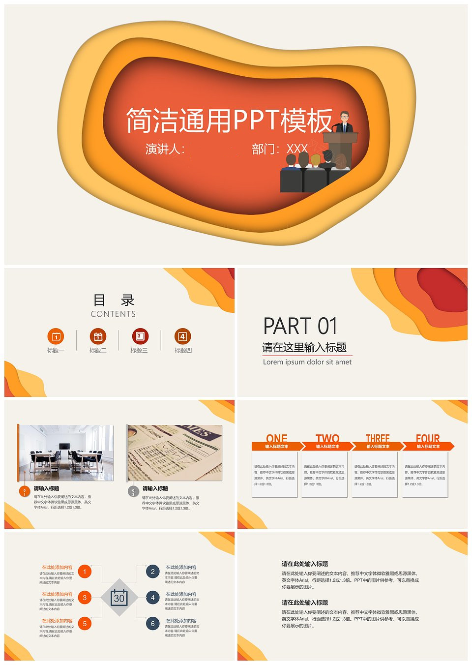 橙红简洁通用PPT模板