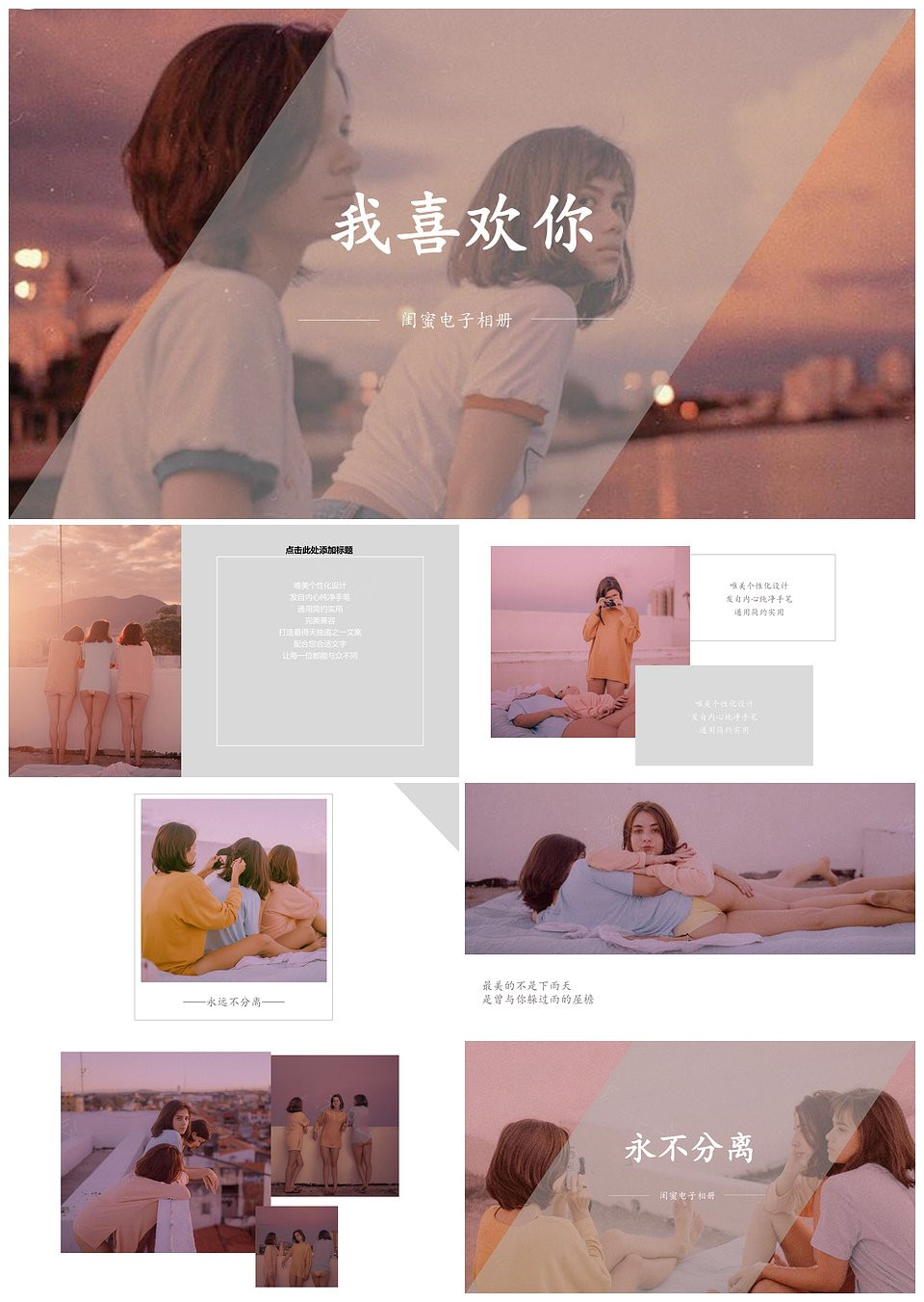 粉色少女快乐闺蜜 小清新文艺电子相册PPT模板