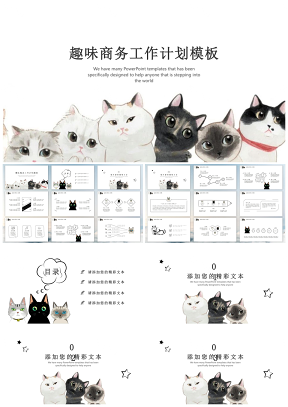 黑白趣味喵星人手绘活动策划营销管理商务PPT通用模板下载