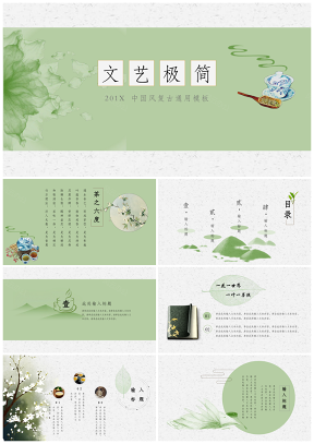 中国风复古茶文化文艺清新创意生态产品推广PPT模板下载