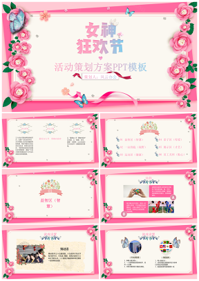 女神狂欢节妇女节三八妇女节活动策划PPT模板下载