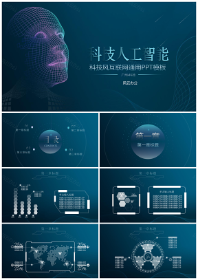 蓝色酷炫互联网科技人工智能ppt动态模板下载