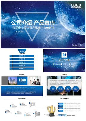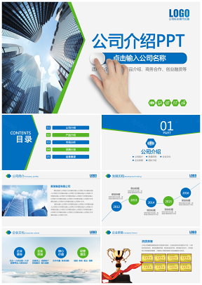 蓝色清新简约公司介绍产品宣传动态PPT模板