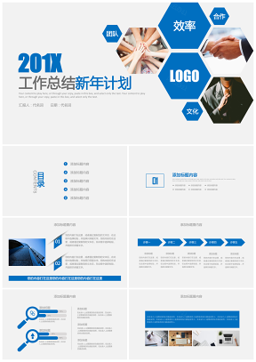 年蓝色年终工作总结新年计划PPT模板下载
