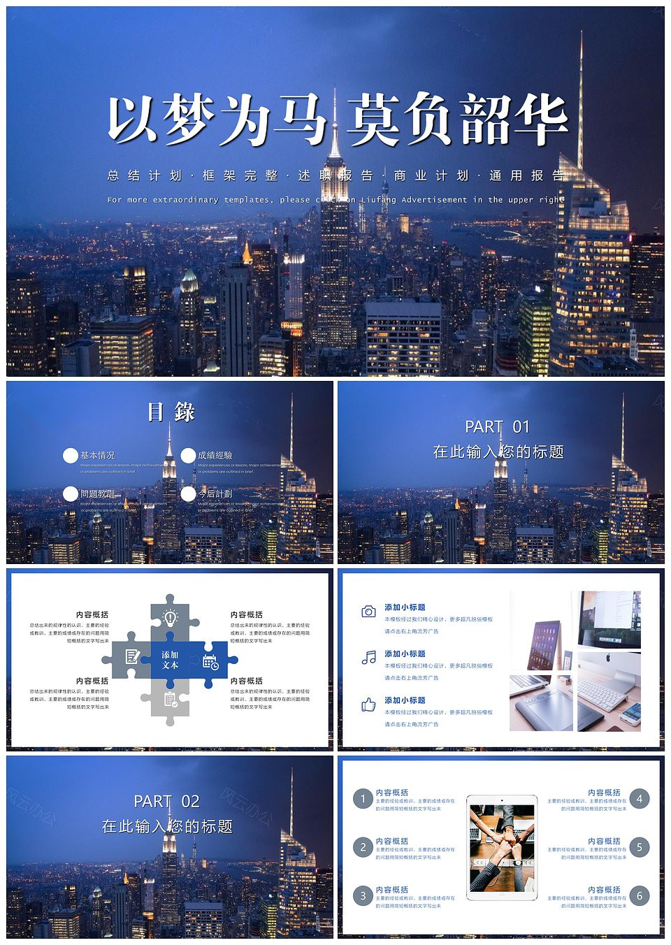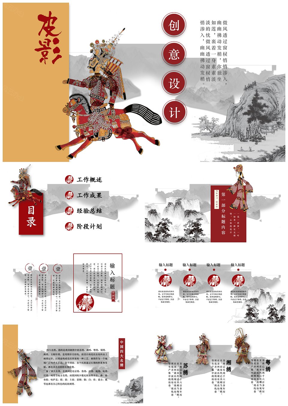 炫酷皮影风年终总结工作汇报通用PPT模板