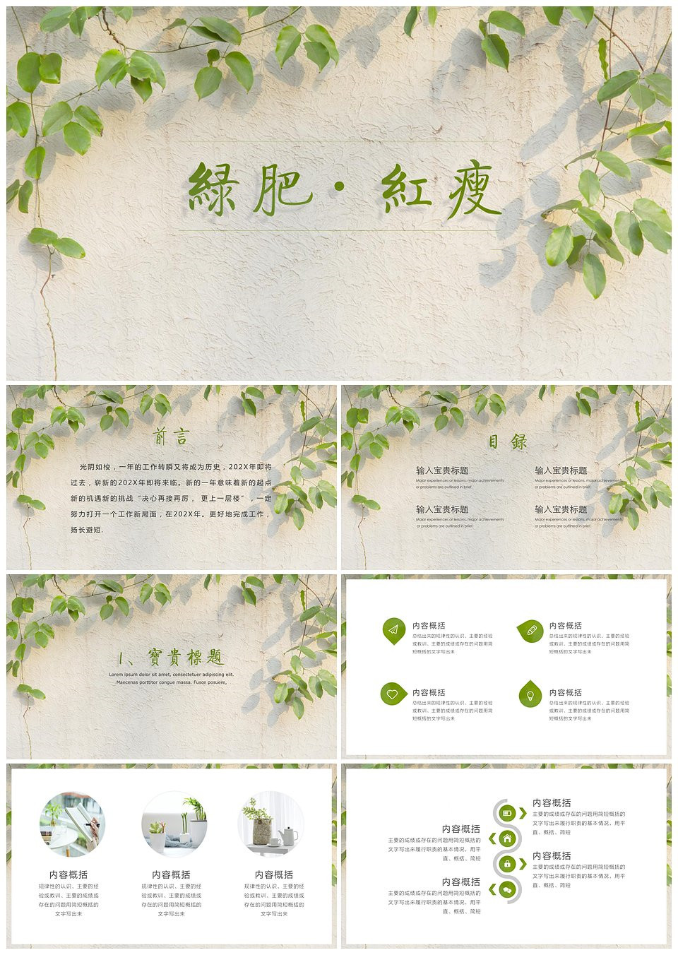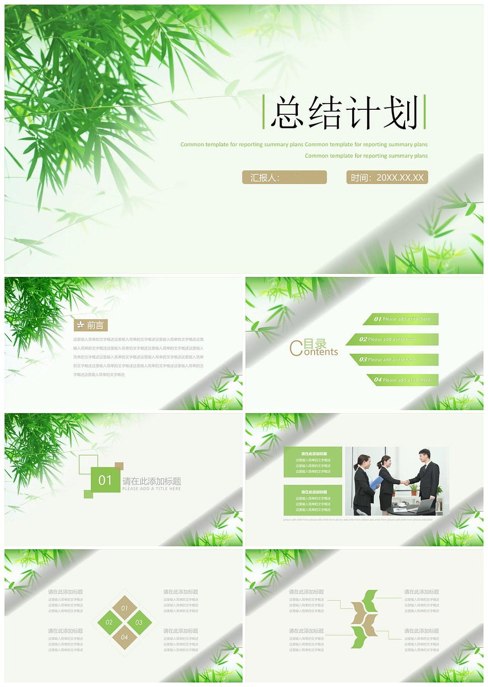 小清新秀逸神韵竹叶工作总结通用ppt模板