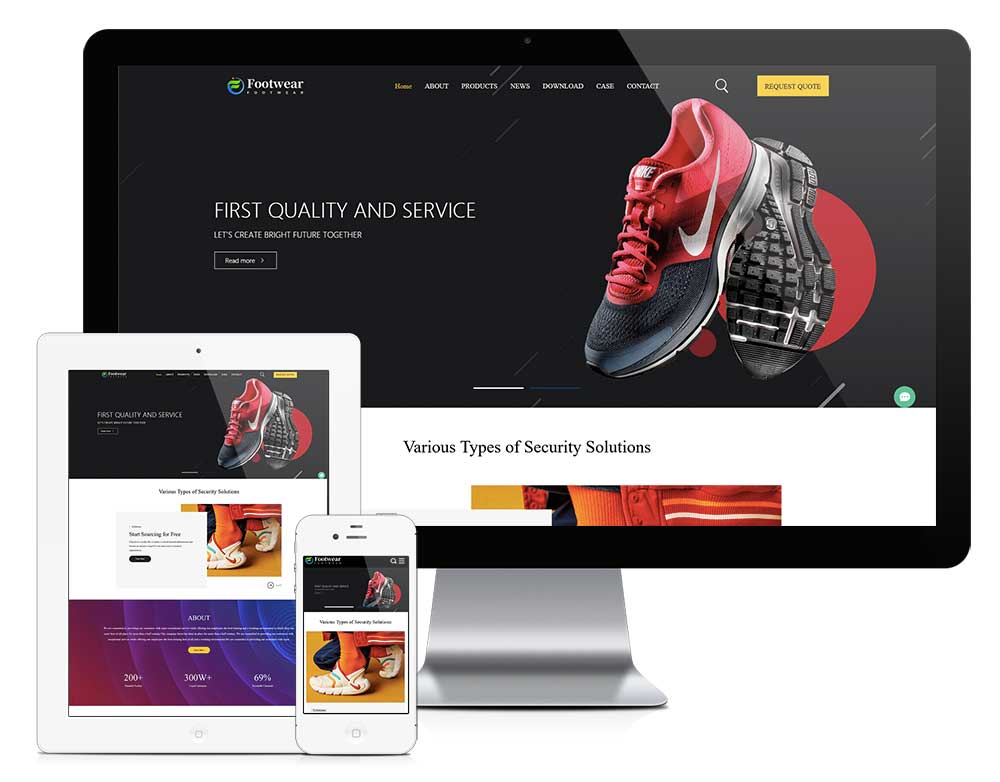 (自适应手机)响应式鞋业外贸企业网站模板 鞋子英文网站易优cms源码下载