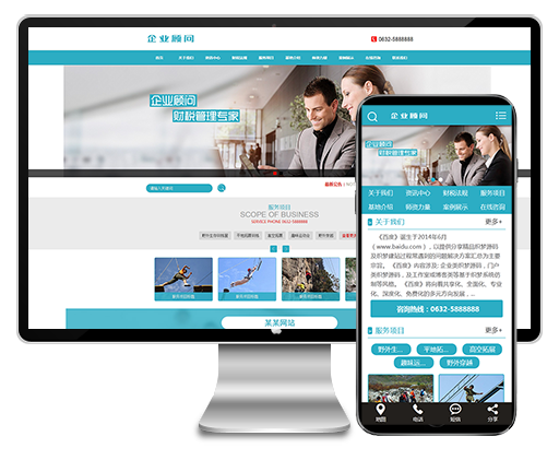 蓝色风格商务服务企业管理企业顾问行业织梦模板dede源码下载(带手机)