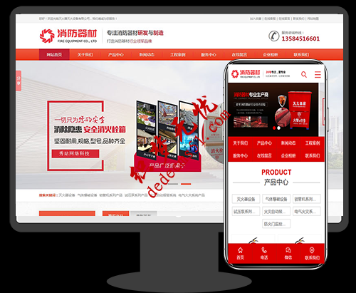 营销型灭火器消防器材机械设备类网站织梦模板dede源码(带手机端)