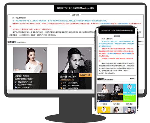 微信名片电子名片微名片系统织梦模板dedecms模板下载(自适应手机)