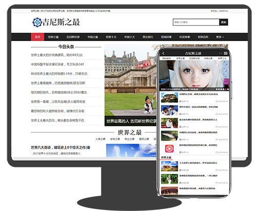 吉尼斯世界纪录新闻资讯美文博客个人网站织梦模板(带手机端)