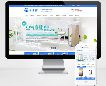 营销型蓝色车载空气净化器净水机等环保设备等织梦模板dede模板网站源码下载(带手机版)