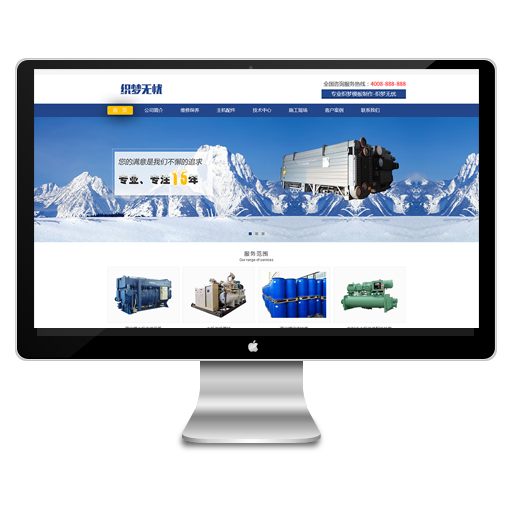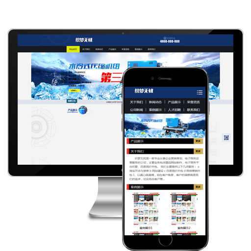 (带手机版数据同步)蓝色制冷机械设备织梦网站源码dedecms模板下载