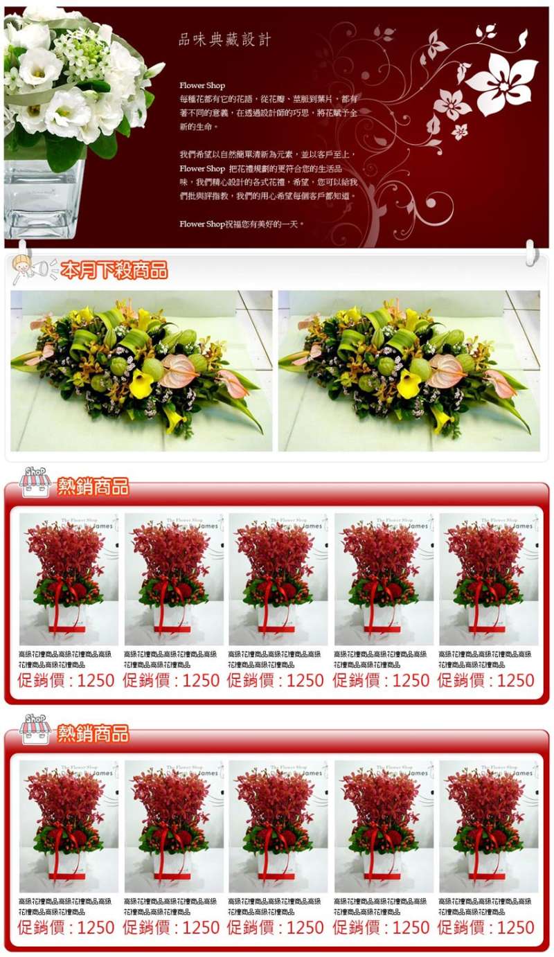 淘宝店铺花店网站商品鲜花展示列表psd模板素材下载