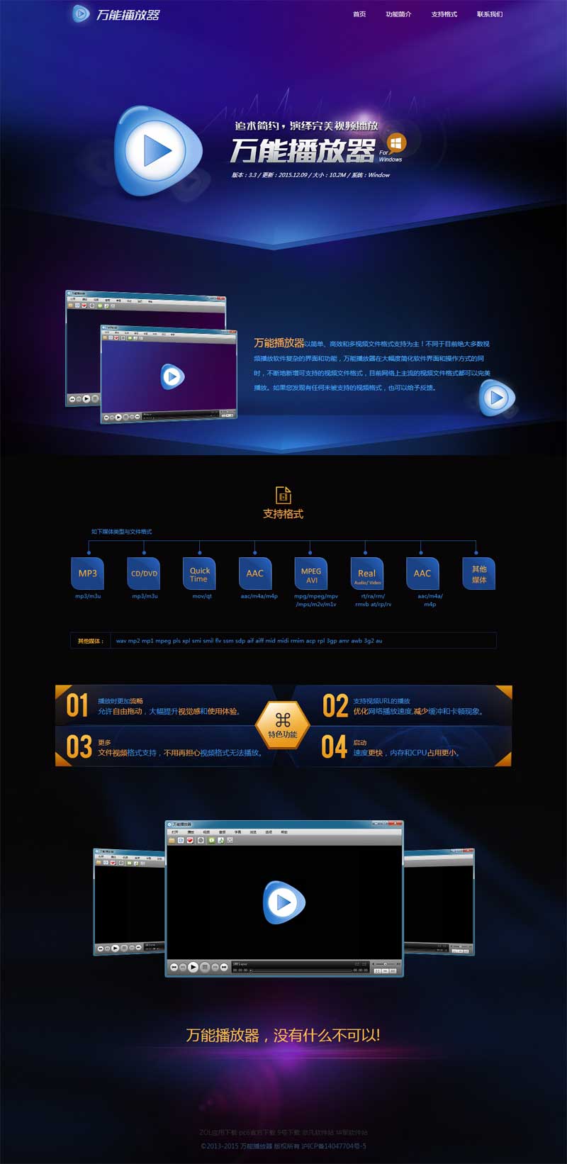 实用的万能播放器介绍页面模板html下载