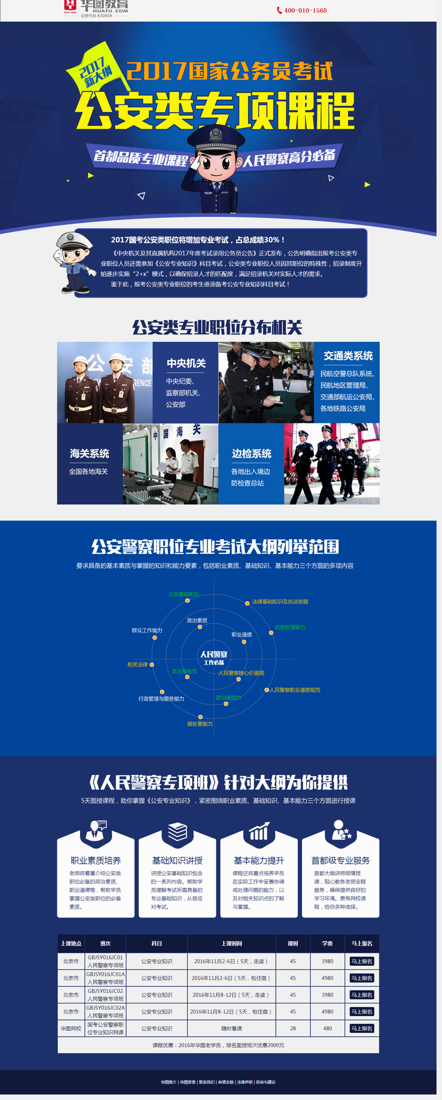 蓝色的国考公安类课程介绍专题模板html下载 2017国考人民警察职位专业科目考试新大纲辅导课程包装介绍专题