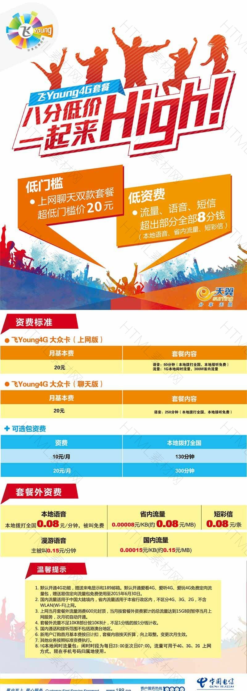 电信4G活动套餐资费页面