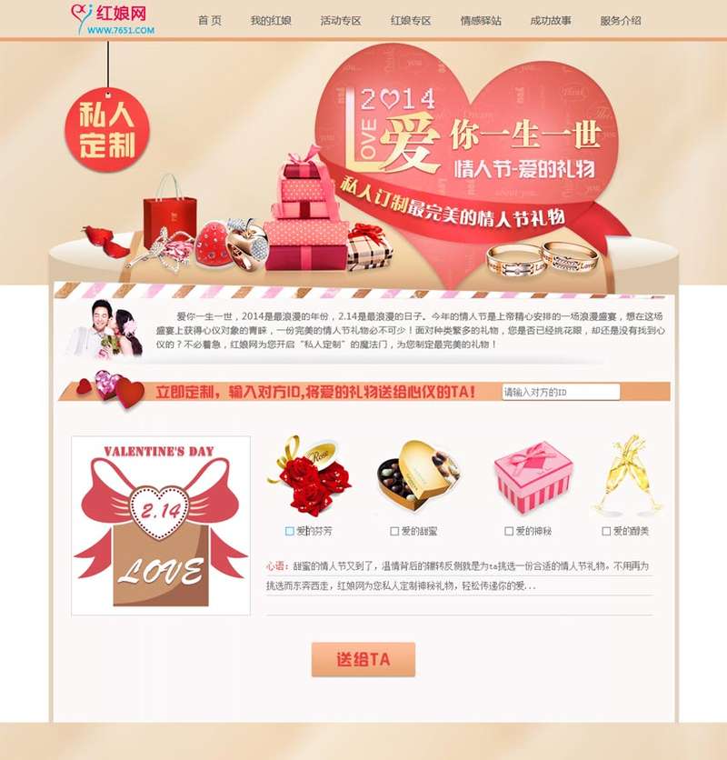 私人定制情人节专题页面模板HTML源码下载